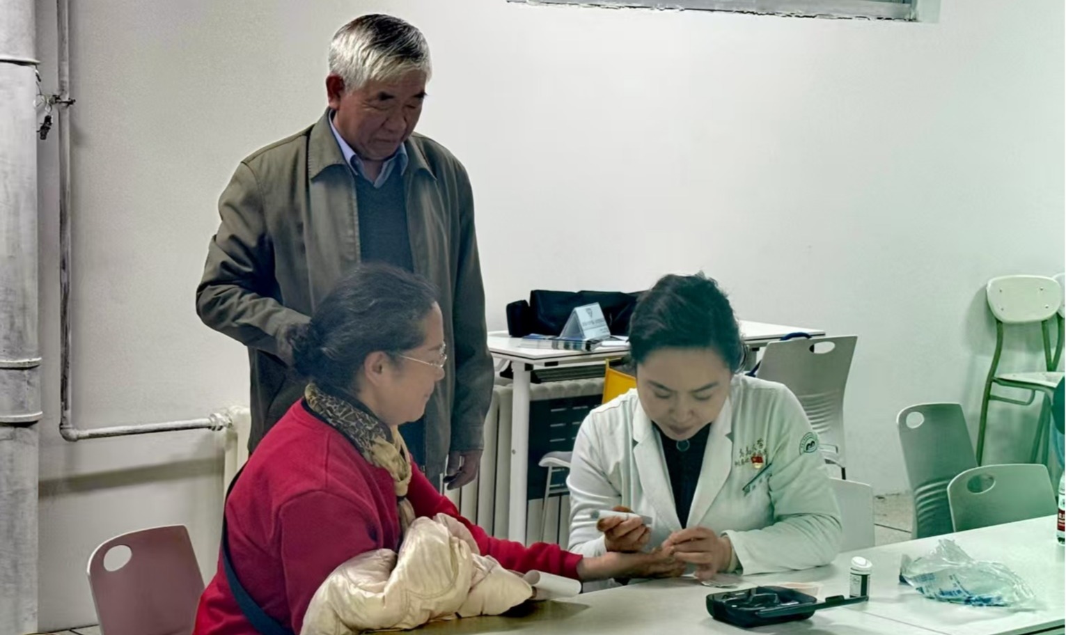 讲座结束后,医护团队分别在两院开展义诊服务。现场设立健康咨询、心电图、血糖、血压检测等服务点,医护人员耐心为师生检查并提供个性化建议。对血压、血糖异常者,详细记录数据并指导后续管理;对存在心血管高危因素者,建立健康管理微信群,实现动态跟踪。活动期间,健康服务中心发放《合理膳食健康基石》手册、健康服务卡,进一步普及心血管防治知识。